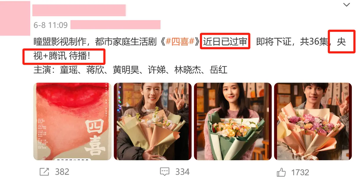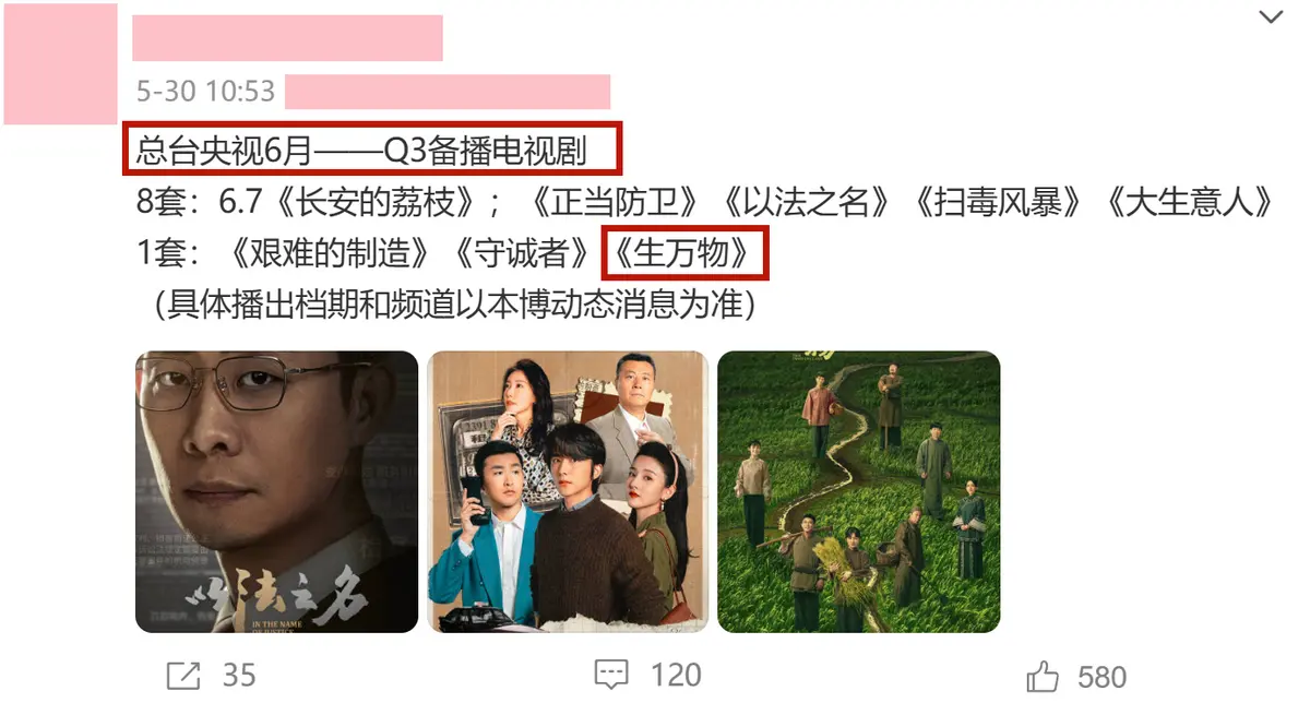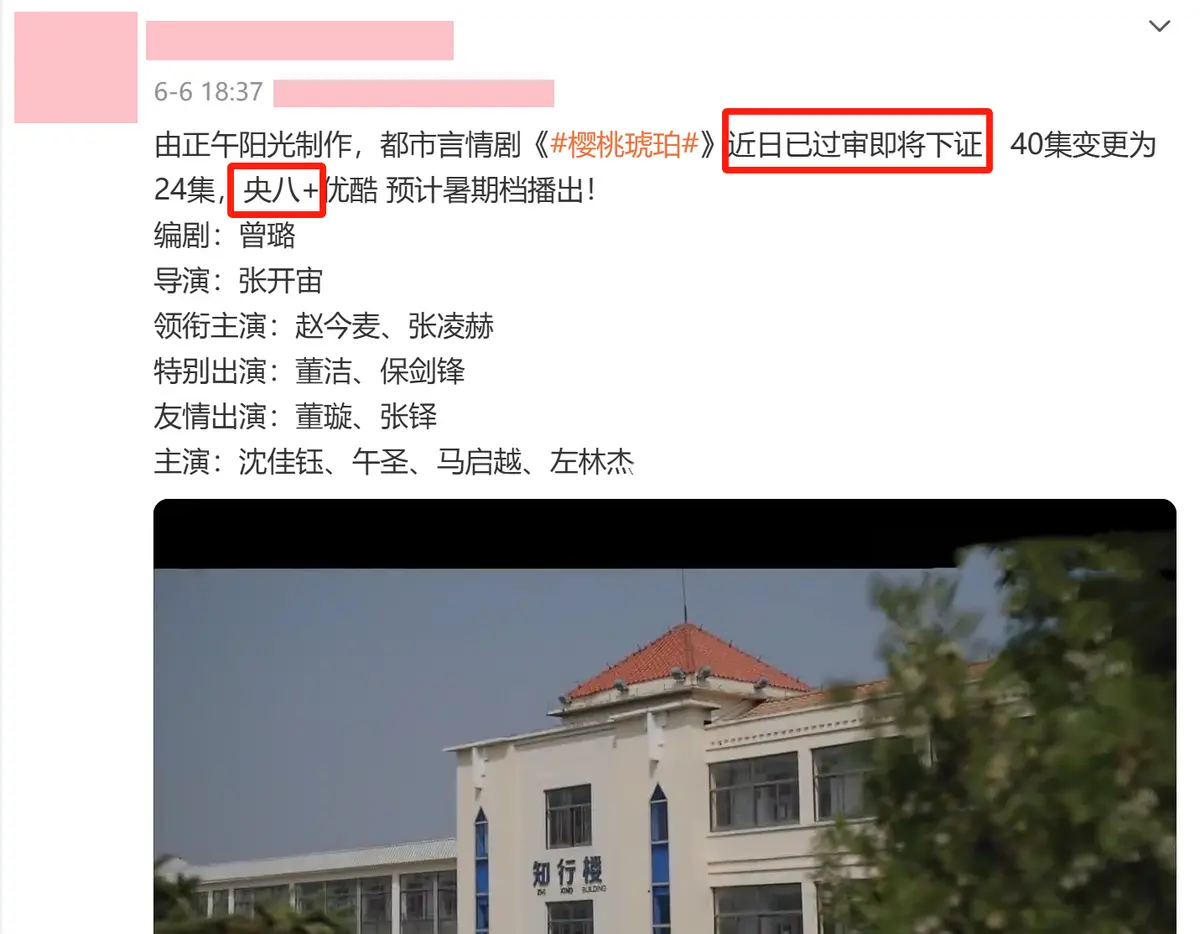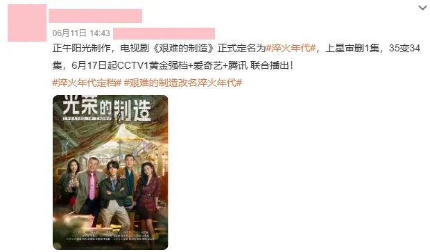 网传该剧将于6月17日上星央视一套黄金档,桃厂和鹅厂联合播出。