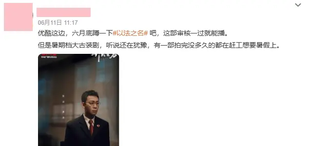 网传该剧将于6月底登陆央视八套黄金档,优酷同步播出。